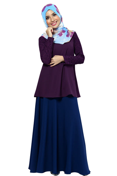 You really don’t need expensive pieces of clothing to make an impression. All you need is an elegant blouse Mouslimah in a bold color and your natural grace to wear it. That’s why you’ll love the Lacy Evening Blouse Mouslimah in purple, and you’ll love wearing it every single time! The bold purple attracts all eyes, while the lacy sleeves and shoulders add a touch of elegance to the classic cut of this blouse Mouslimah.